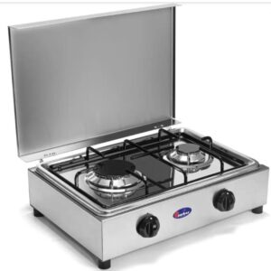 Dvojni plinski kuhalnik CP Parker z pokrovom je izdelan iz nerjavečega jekla. Zgornji del kuhalnika je odstranljiv in vsebuje varnostni ventil, gorilniki so izdelani iz zlitine Pyral N2, emajliranim razpršilcem plamena in rešetko. Je izjemno uporaben pripomoček za kuhanje, ki ga lahko uporabljate, tako na prostem kot tudi v notranjih prostorih. Je enostaven za uporabo in čiščenje.