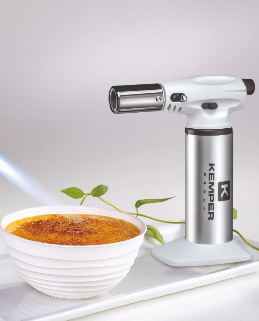 V paketu je priložen butanski plin art. 10051. Gorilnik je opremljen z integriranim piezo vžigom, velikim rezervoarjem (13 g), varnostnim zaklepom in zaklepom za neprekinjen plamen. Moč plamena je nastavljiva, prav tako sistem za uravnavanje zraka za ustvarjanje mehkejšega plamena. Idealen za uporabo v kuhinji za karameliziranje sladic in zapečenje mesa.