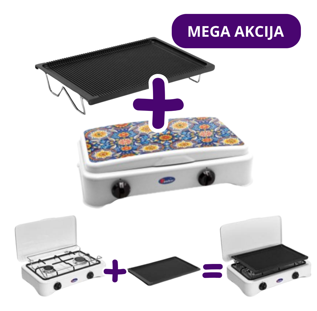 V paketu Aldagas tokrat poleg CF Parker dvojnega plinskega kuhalnika IBIZA za zunanjo uporabo prilagamo CF Parker PMARIA-R rebrasto ploščo iz litega aluminija prevlečena s teflonom, ki se z podstavkom pritrdi na kuhalnik in je ob enem odlična priložnost za peko vaše hrane na vrtu, kampiranju ali pikniku na prostem.
